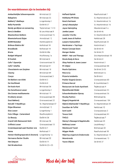 Cadeaubon gekregen? Wat leuk! Je kunt deze inleveren bij een van onderstaande adressen: