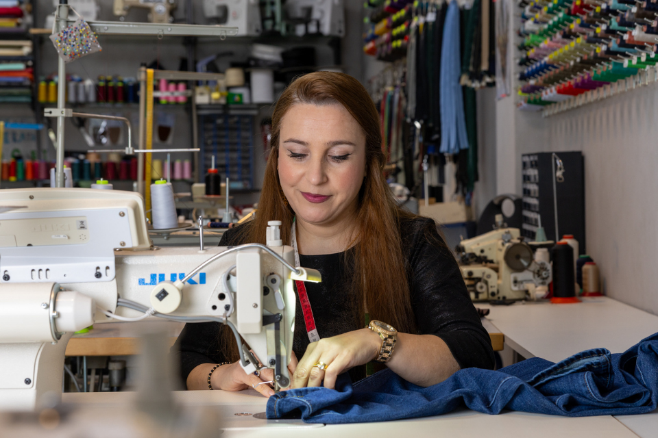 In de winkel zijn de taken verdeeld. Hemen doet het precisiewerk, van het vervangen van ritsen tot het herstellen van kleding, zelfs uit leer en suède. Zijan helpt klanten, speldt af, legt klaar. “Dat kost veel tijd,” zegt ze, “maar het contact met klanten is leuk. Elke dag is anders.” En dat klantenbestand is behoorlijk breed. Naast particulieren uit Losser, De Lutte, Overdinkel, Oldenzaal en Duitsland, werkt Hemen ook samen met kledingwinkels uit de buurt, zoals Shoeby, Okay en Wigger. Soms moet er een broek worden ingekort of is er een rits kapot.