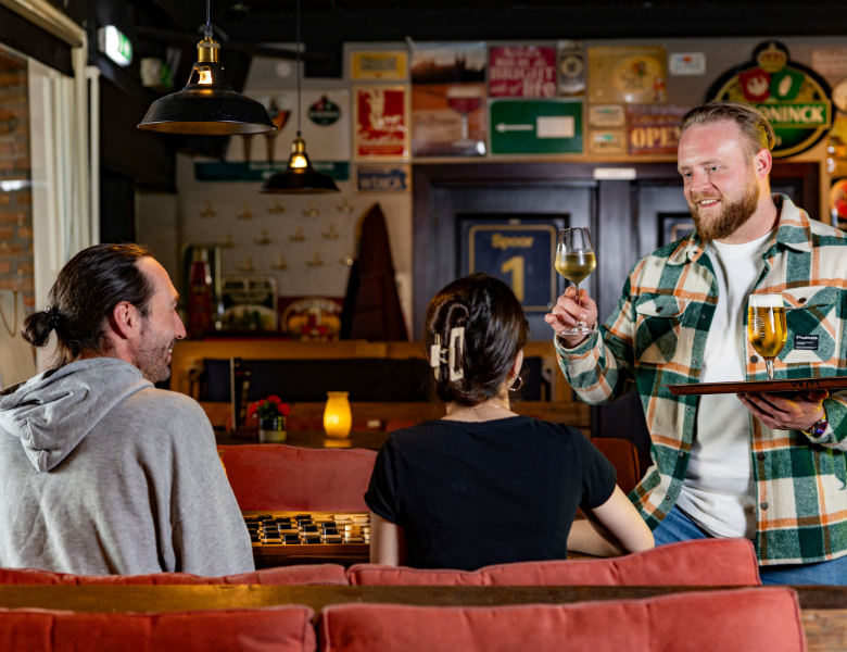 Met een team van zes mensen runt Thomas het café: “Hier gaat het om gastvrijheid.” Dat merk je. Terwijl hij vertelt, beschrijft hij zijn favoriete moment van de dag. “Ik loop vaak heen en weer tussen het voorcafé en de zaal achter. Soms sta ik dan even in een hoekje en kijk ik rond. Sfeer voelen. Mensen die lachen, een spelletje doen, met elkaar in gesprek zijn. Dan denk ik: mooi, hè?”